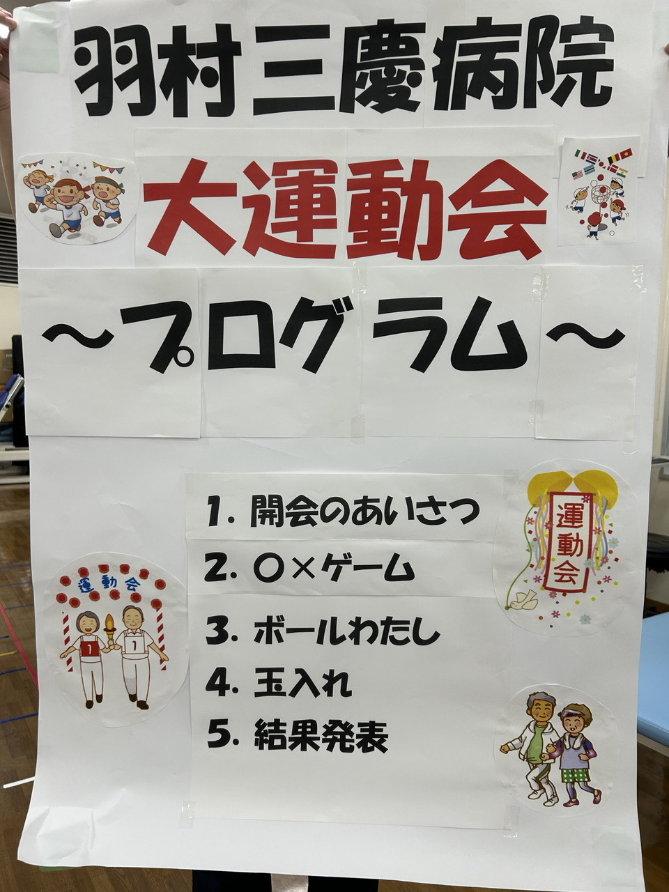 秋といえば、「スポーツの秋」ということで、リハビリ室にて運動会を開催しました。