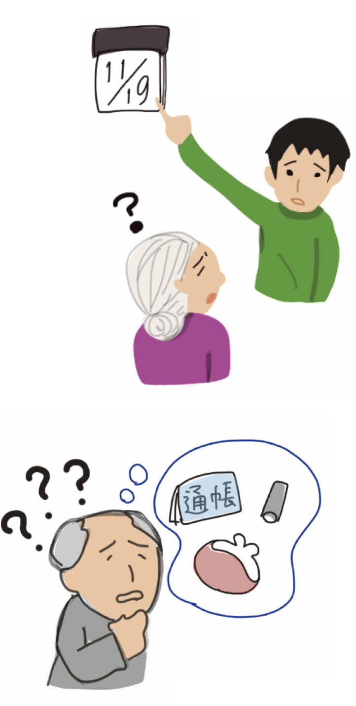 ●今日の日付や、一緒に住んでいない家族の名前が分からなくなった。